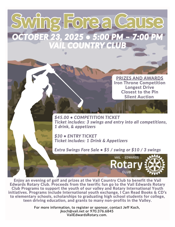 Join us October 23rd at the Vail Valley Country Club for an evening of fun and competition as we come together in the Tee-rific Fund Raiser. Details above and use the QR code below to sign up.